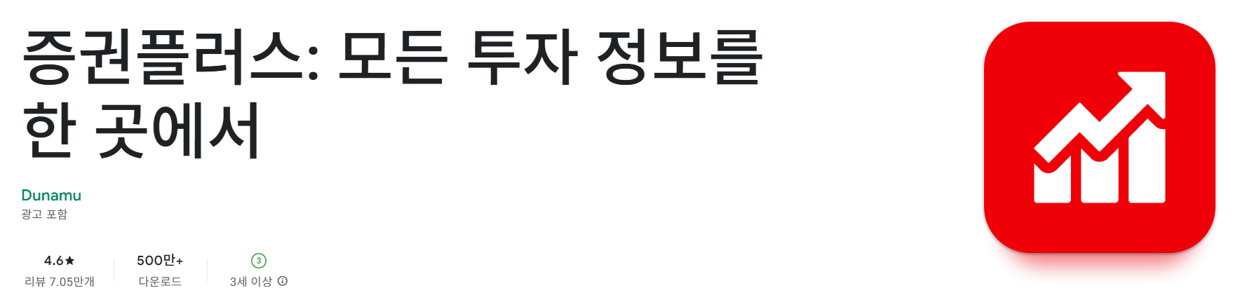 - 구글 플레이스토어에서 '증권플러스'를 검색 후 설치합니다.